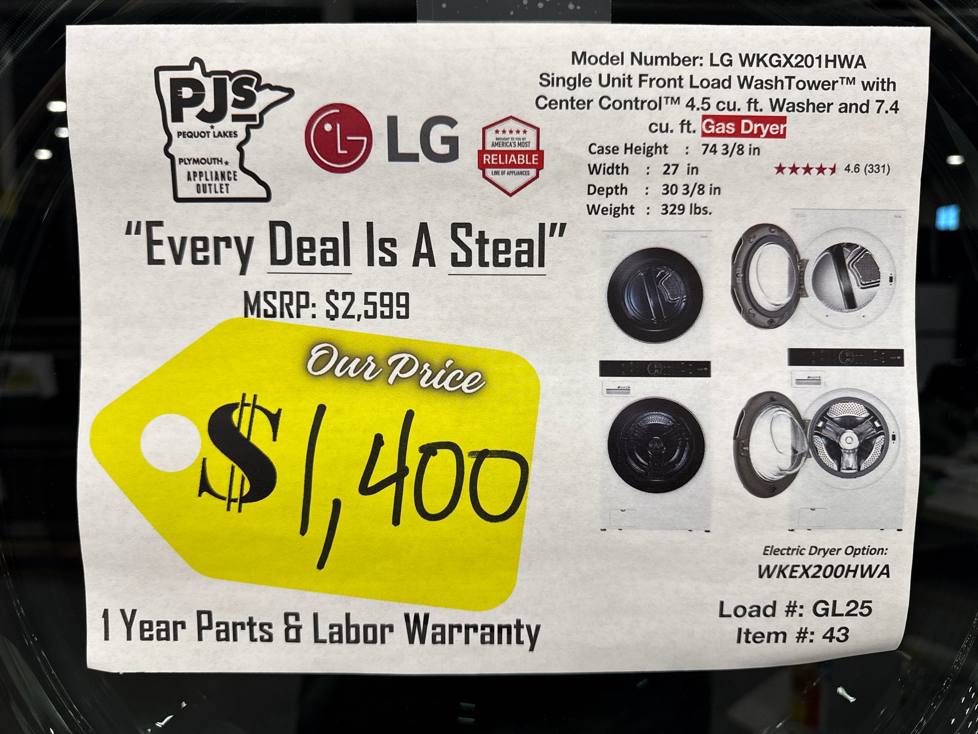 1 YEAR PARTS AND LABOR WARRANTY