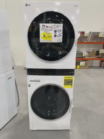 LG WKGX201HWA 27 Inch Smart Wash Tower with 4.5 cu. ft. Washer Capacity, 7.4 cu. ft. Dryer Capacity, TurboWash™360° Technology, Allergiene™ Wash Cycle, LG ThinQ® Technology, AI Fabric Sensor, and ENERGY STAR®: White