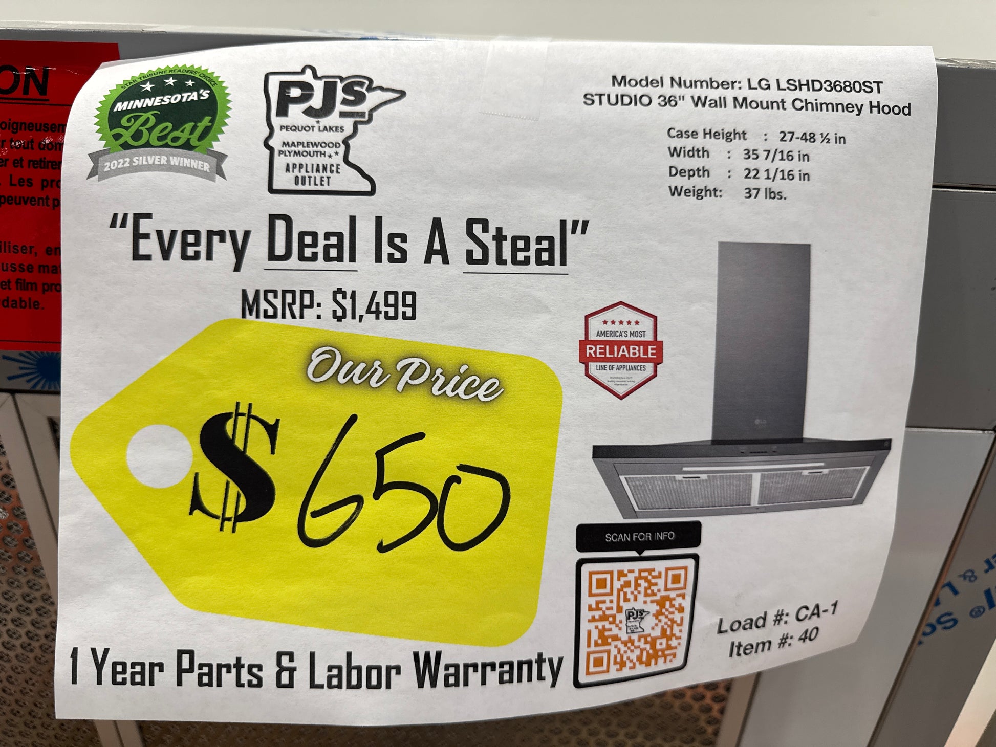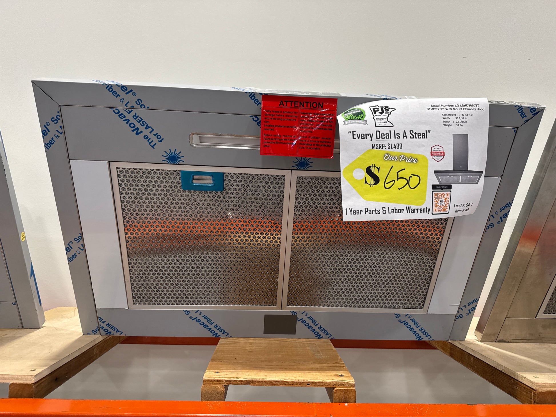 LG Studio LSHD3680ST 36 Inch Wall Mount Smart Chimney Hood with 600 CFM Internal Blower, Wi-Fi, IR Touch Controls, LED Lighting, Mesh Filters, Low-Profile Body, and RoHS Compliant: Stainless Steel