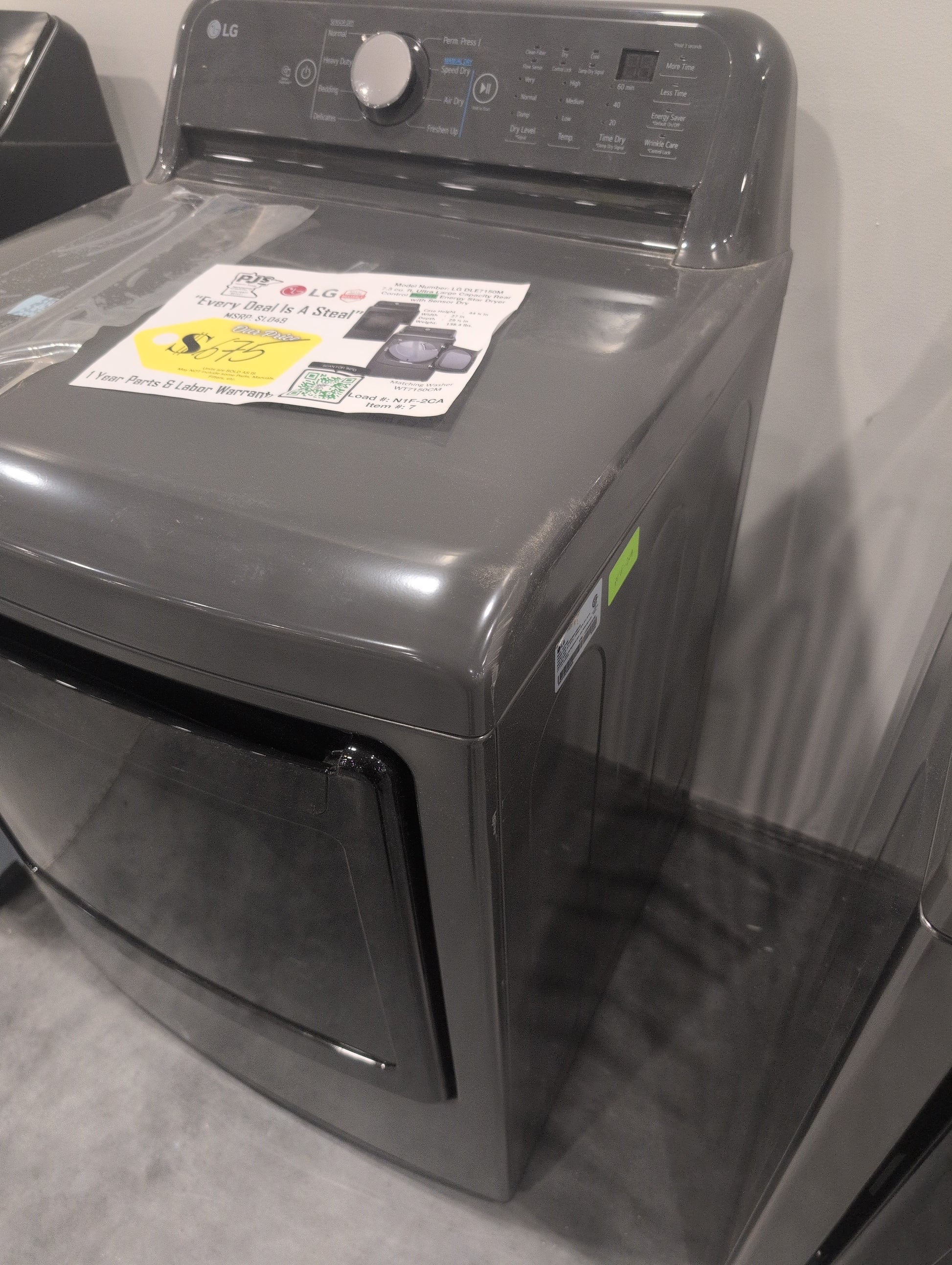 LG DLE7150M 27 Inch Electric Dryer with 7.3 Cu. Ft. Capacity, 8 Dryer Programs, Sensor Dry, Dial-A Cycle™ Knob, FlowSense™ Duct Clogging Indicator, and Energy Star Certified: Middle Black