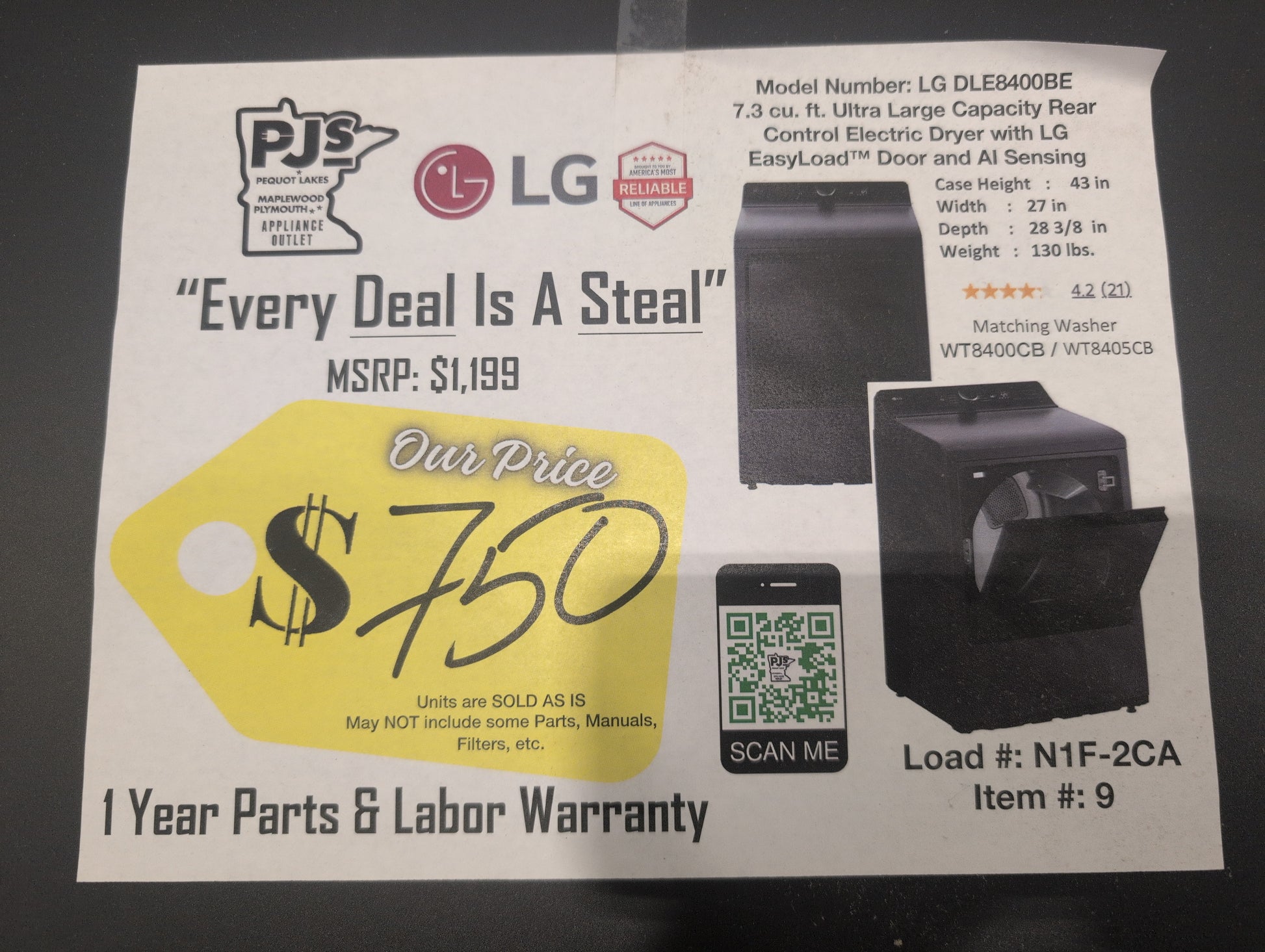 - Built with high-quality materials and backed by LG's reputation for reliability, this dryer is designed to withstand years of regular use.