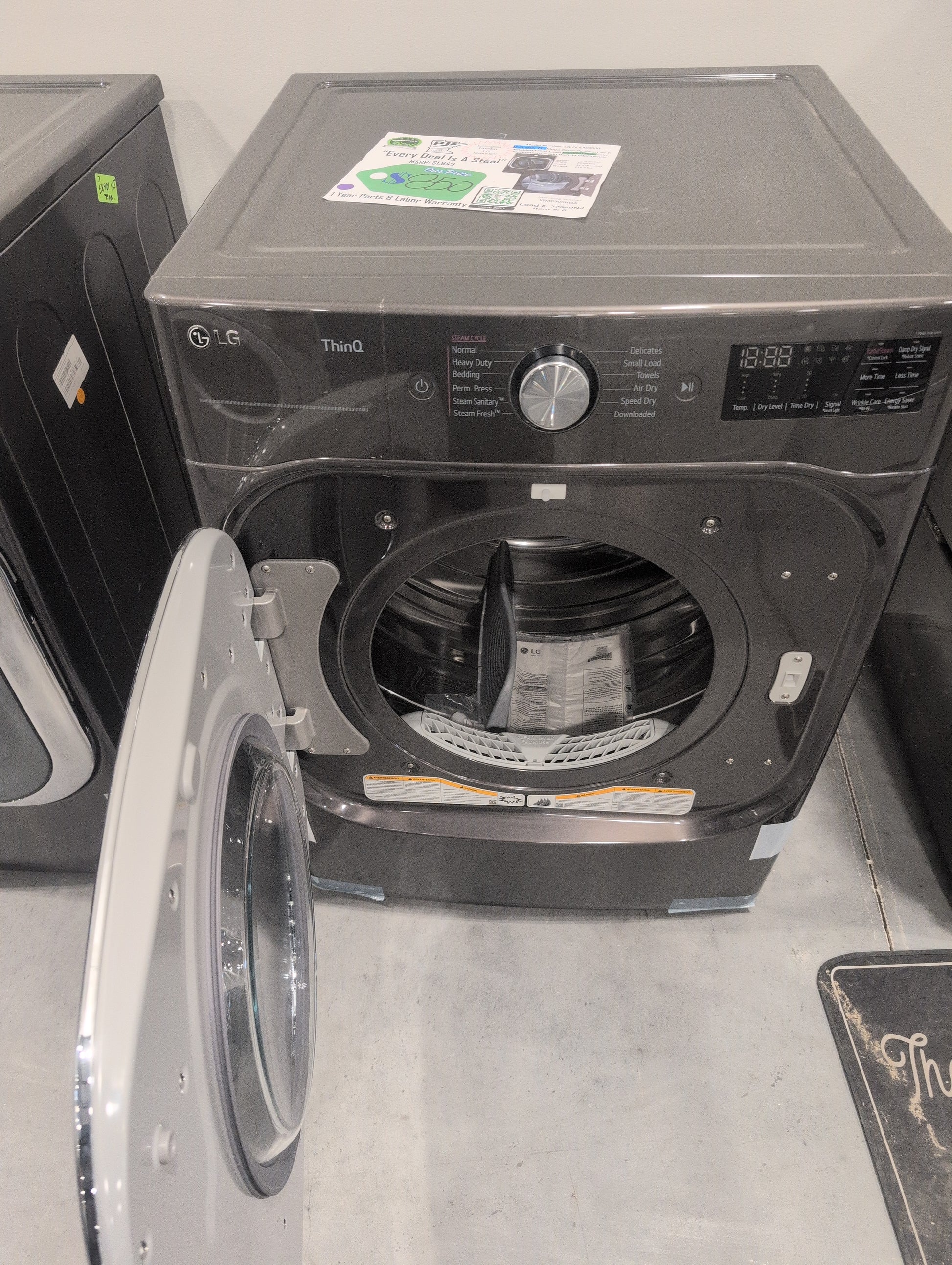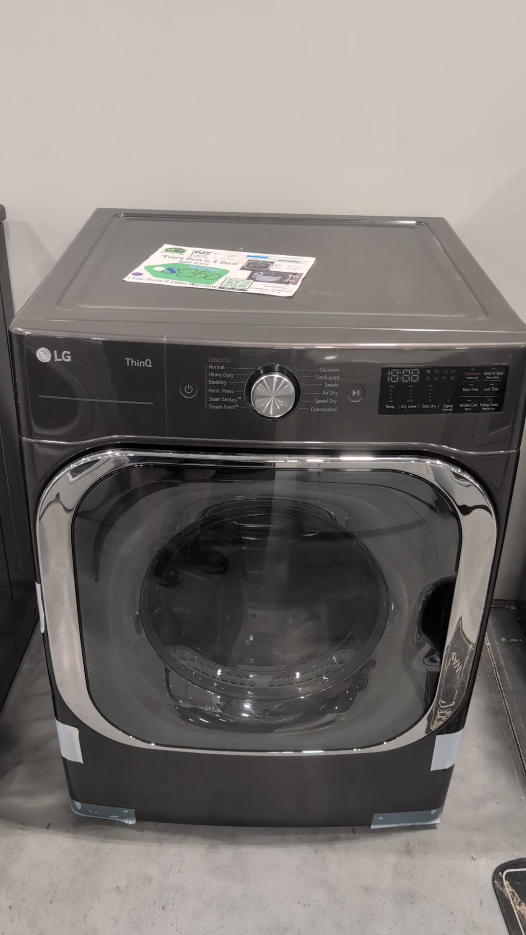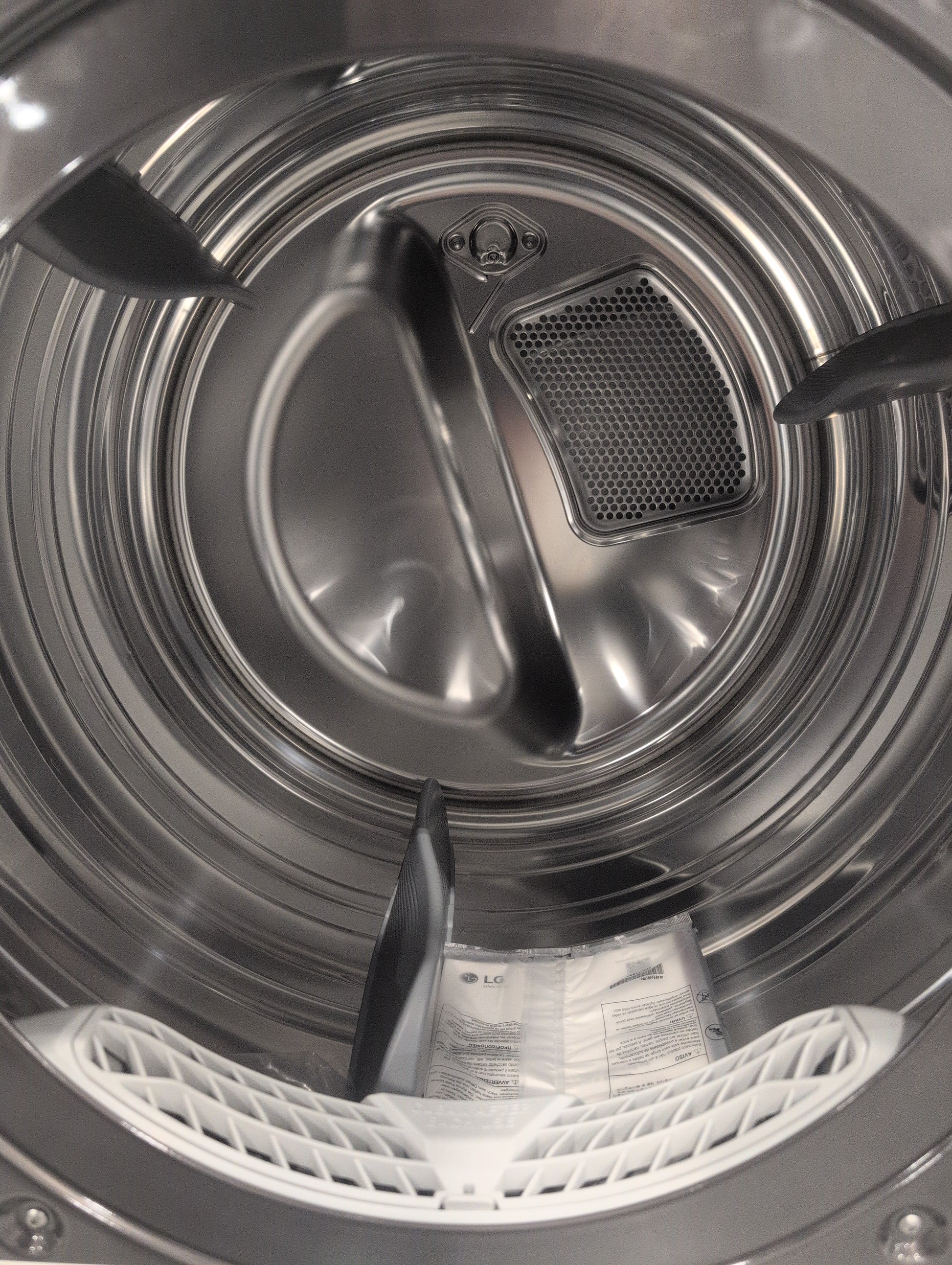 Spend less time on laundry with more room for clothes with 9.0 cu. ft. of Mega Capacity. TurboSteam™ technology reduces wrinkles and odors in up to 5 garments in just 10 minutes for when you don't have time to wash. LG's AI Fabric Sensor Dry optimizes drying times and temperatures by detecting the laundry's characteristics. It measures the moisture levels during the cycle and automatically adjusts the drying time to help ensure you get dry laundry every time. With the Wrinkle Care option, the dryer periodically tumbles your laundry to keep clothes wrinkle free. Sometimes, you just don't have time to wait for a standard dry cycle. LG's Speed Dry Cycle is perfect for small loads and can have clothes dry in just 25 minutes. Expand the limits of your laundry room with the LG ThinQ® app. Select a cycle, start or stop the dryer and get notifications about when your laundry will be done, all from your smartphone. It even works with Google Assistant and Amazon's Alexa, so you can manage your laundry with simple voice commands. Made to look good and build to last, an Aluminized Alloy Steel Drum keeps nicks and chips at bay so the dryer will look new for years to come.