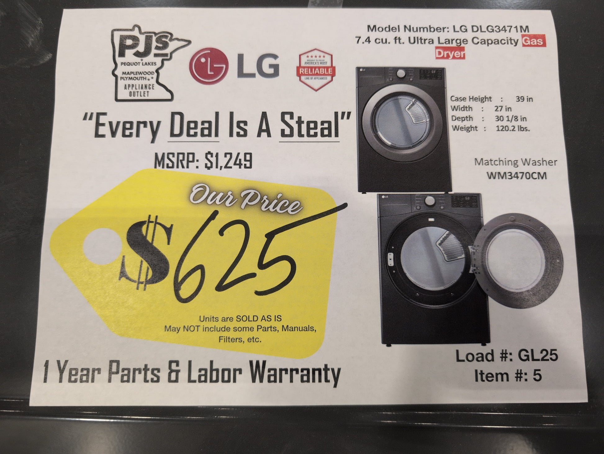 LG DLG3471M 27 Inch Gas Dryer with 7.4 Cu. Ft. Capacity, 8 Dry Program, Dial-A-Cycle®, Wrinkle Care Option, Control Lock, and Speed Dry: Middle Black