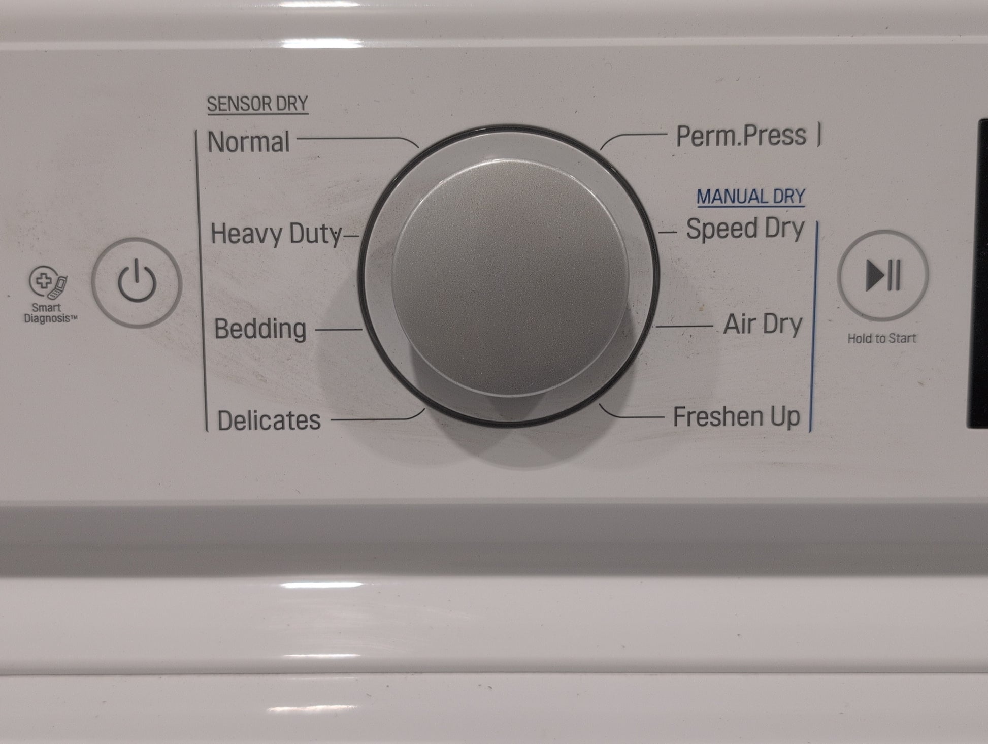 LG DLG7101W 27 Inch Gas Dryer with 7.3 Cu. Ft. Capacity, FlowSense™ Duct Clogging Indicator, Aluminized Alloy Steel Drum, LoDecibel™ Quiet Operation, 8 Dry Programs, Sensor Dry, Bedding, Add GarWrinkle Care, and ENERGY STAR® Certified