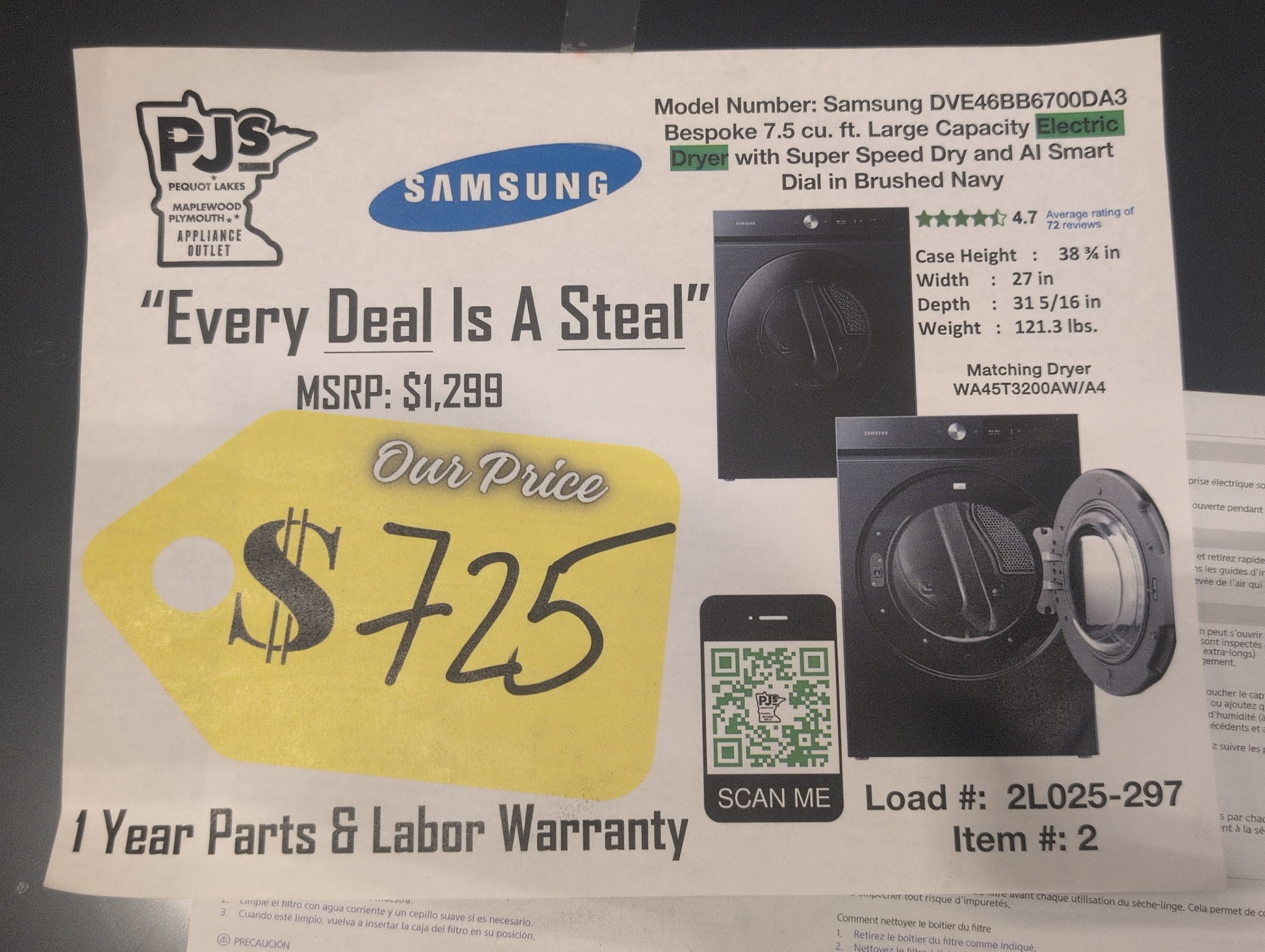Wi-Fi connected so you can get end-of-cycle alerts, remotely start and stop your dryer, schedule cycles on your time, and more right from your smartphone with the SmartThings App.
