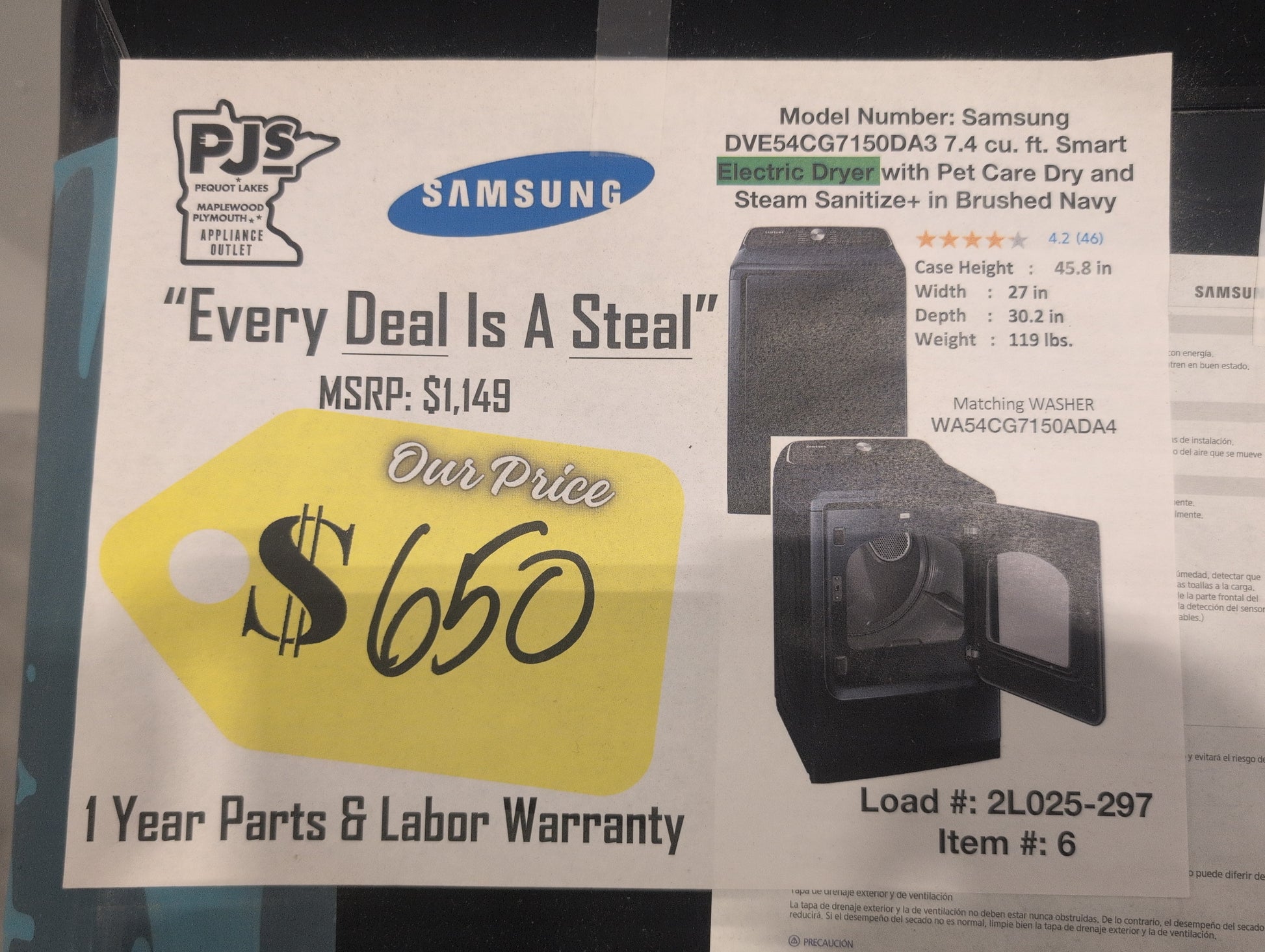 1 YEAR PARTS & LABOR WARRANTY