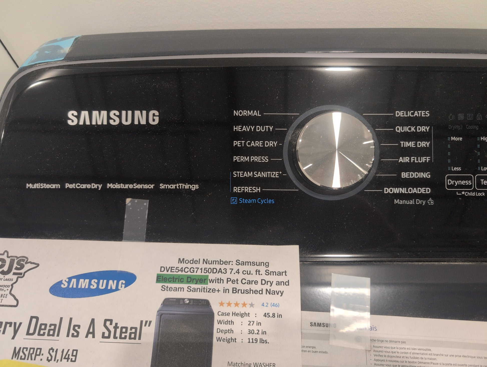 Samsung DVE54CG7150DA3 7.4 Cu. Ft. Smart Electric Dryer with Steam and Pet Care Dry - Brushed Navy