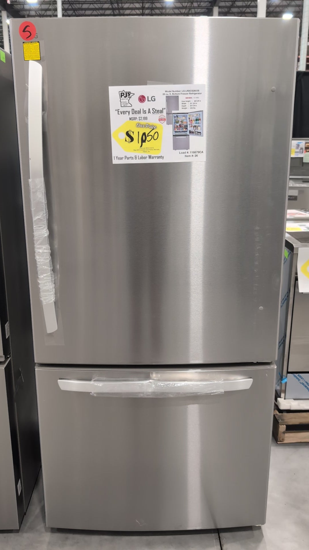 LG LRDCS2603S 33 Inch Freestanding Bottom Freezer Refrigerator with 25.5 Cu. Ft. Capacity, Door Cooling+, Humidity Crispers, Multi-AirFlow, Tempered Glass Spill Proof Shelves, and Energy Star Qualified: PrintProof™ Stainless Steel