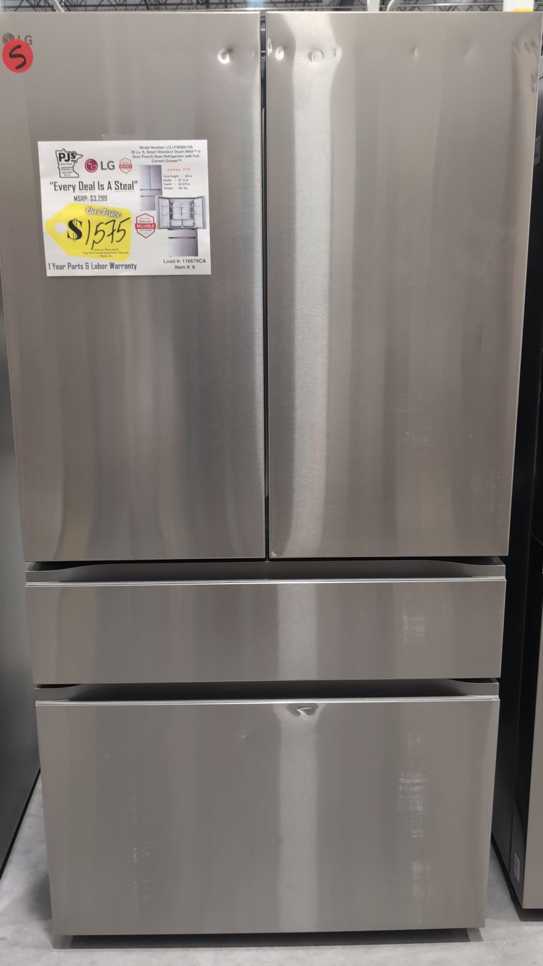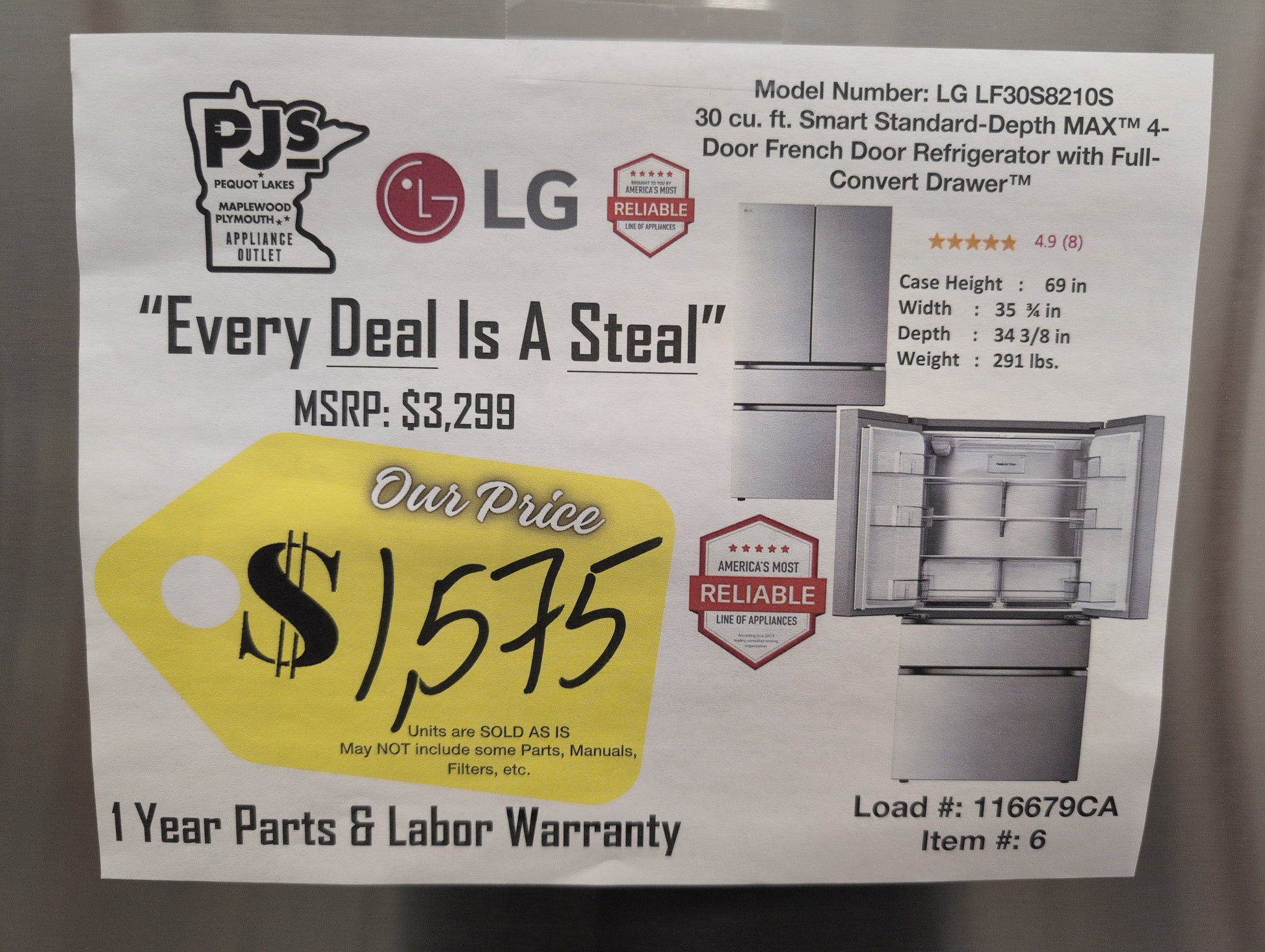 LG LF30S8210S 36 Inch Smart 4-Door French Door Refrigerator with 29.6 Cu. Ft. Capacity, Full-Convert Drawer™, Internal Water Dispenser, Door Cooling+, Smart Diagnosis™, Sabbath Mode, and ENERGY STAR® Qualified