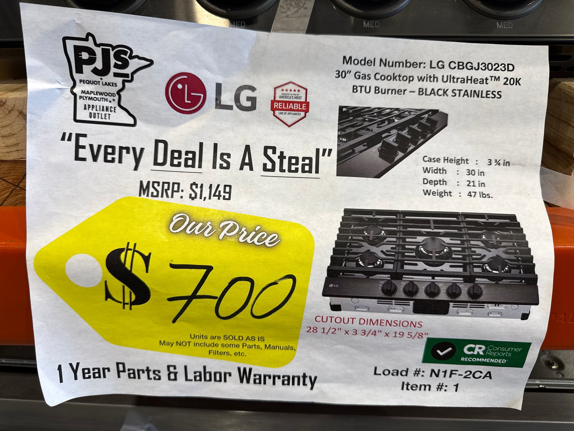 1 YEAR PARTS & LABOR WARRANTY