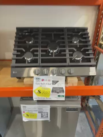 LG CBGJ3023D 30 Inch Gas Cooktop with 5 Sealed Burners, 20K BTU Ultraheat™ Burner, Continuous Cast-Iron Grates, Knobs Control, and Auto Reignition: Black Stainless Steel