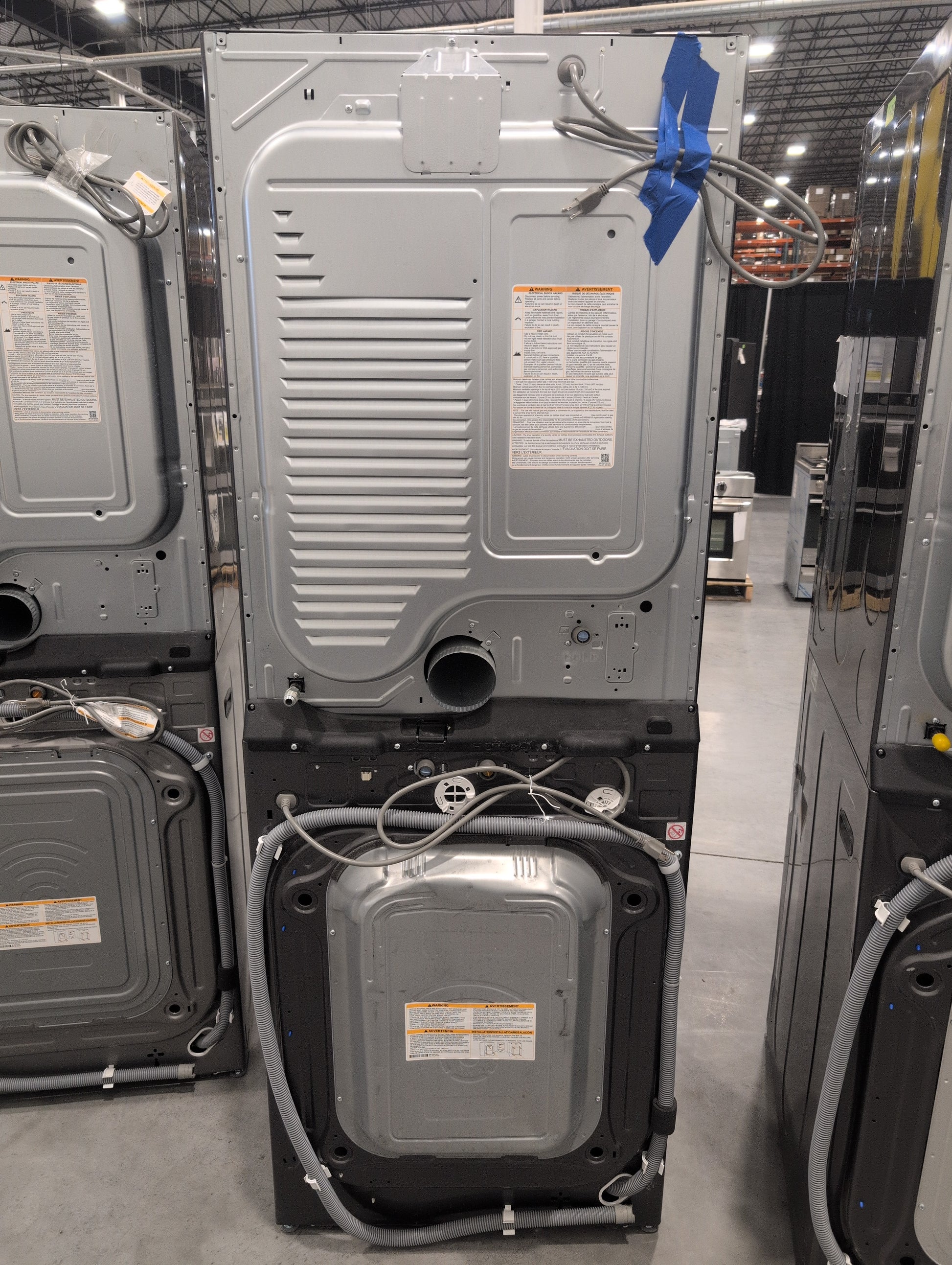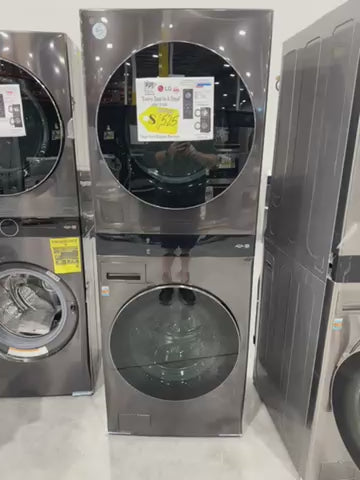 Full-size and fully featured, with the washer on the bottom and dryer on top, the sleek single unit LG WashTower™ takes up half the space,* giving you room to add a sink, a folding table or whatever you like. But unlike conventional stacked pairs, LG's exclusive Center Control® panel is perfectly positioned with both washer and dryer controls at just the right height. Built-in intelligence makes laundry less of a chore by taking out the guesswork, while top-of-the-line innovations put advanced cleaning power within reach.