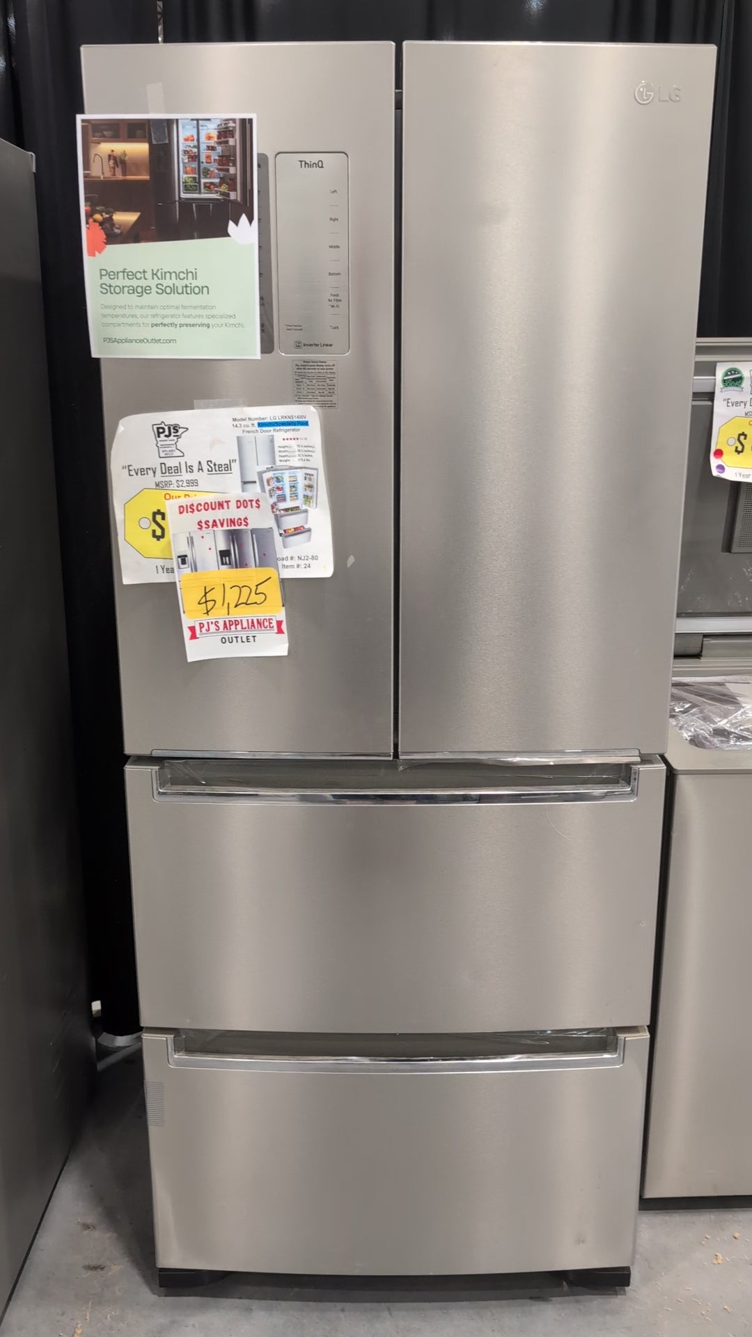 LG LRKNS1400V 30 Inch French 4-Door Kimchi/Specialty Food Refrigerator with 14.3 cu. ft. Capacity, 14 Total Bins, Cooling Care, Multi Storage Mode, Freshness Guard Cover, Multi-Air Flow™ System, and Energy Star Certified