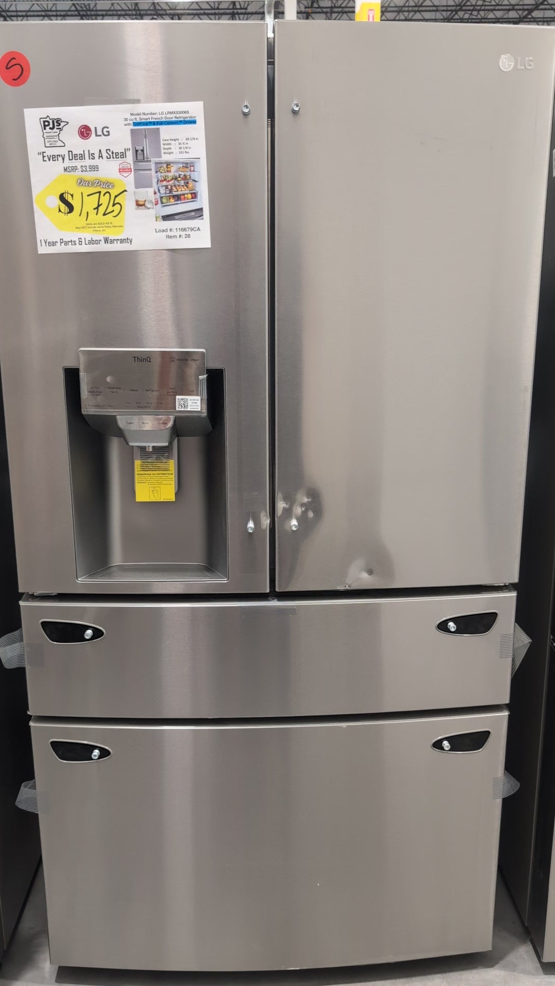 LG LRMXS3006S 36 Inch 4-Door French Door Smart Refrigerator with 30 Cu. Ft. Capacity, Full-Convert™ Drawer, Craft Ice® , Slim SpacePlus®, Door Cooling+, Cool Guard, SmartPull™, Wi-Fi, Smart Diagnosis™, Sabbath Mode, Dual Ice Maker, External Ice/Water Dispenser, Fresh Air Filter, and ENERGY STAR®