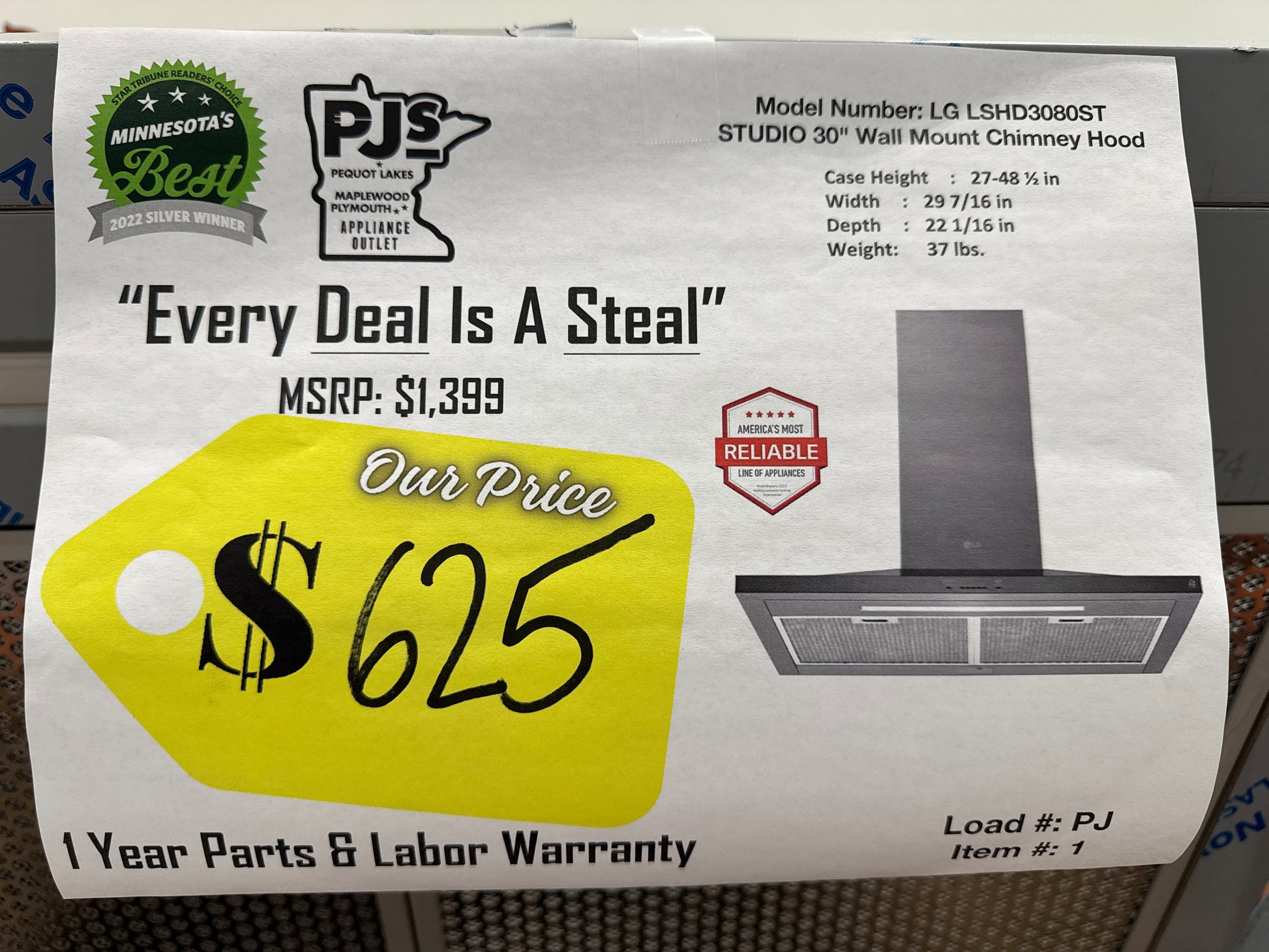 LG Studio LSHD3080ST 30 Inch Wall Mount Smart Chimney Hood with 600 CFM Internal Blower, Wi-Fi, IR Touch Controls, LED Lighting, Mesh Filters, Low-Profile Body, and RoHS Compliant: Stainless Steel