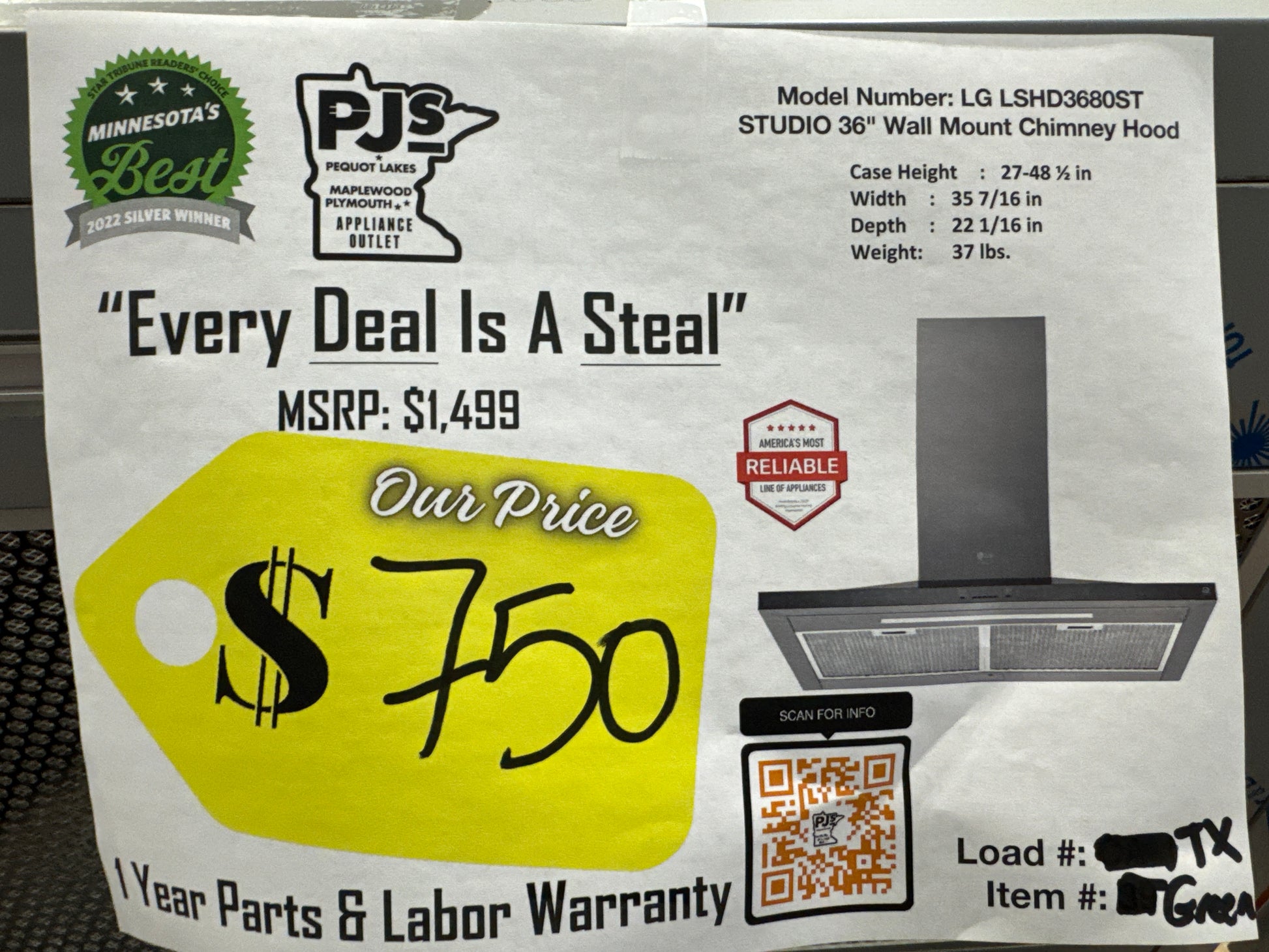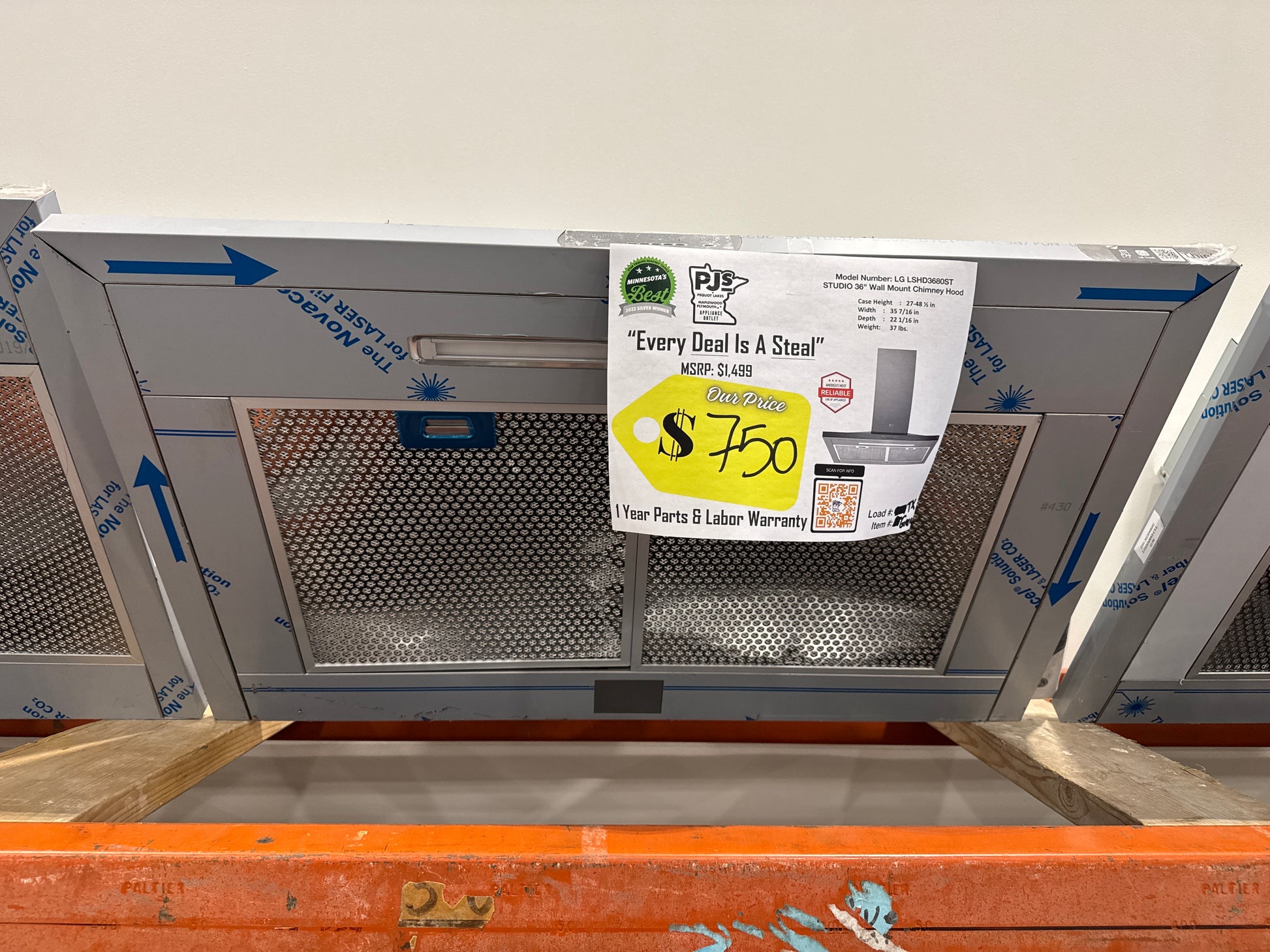 LG Studio LSHD3680ST 36 Inch Wall Mount Smart Chimney Hood with 600 CFM Internal Blower, Wi-Fi, IR Touch Controls, LED Lighting, Mesh Filters, Low-Profile Body, and RoHS Compliant: Stainless Steel