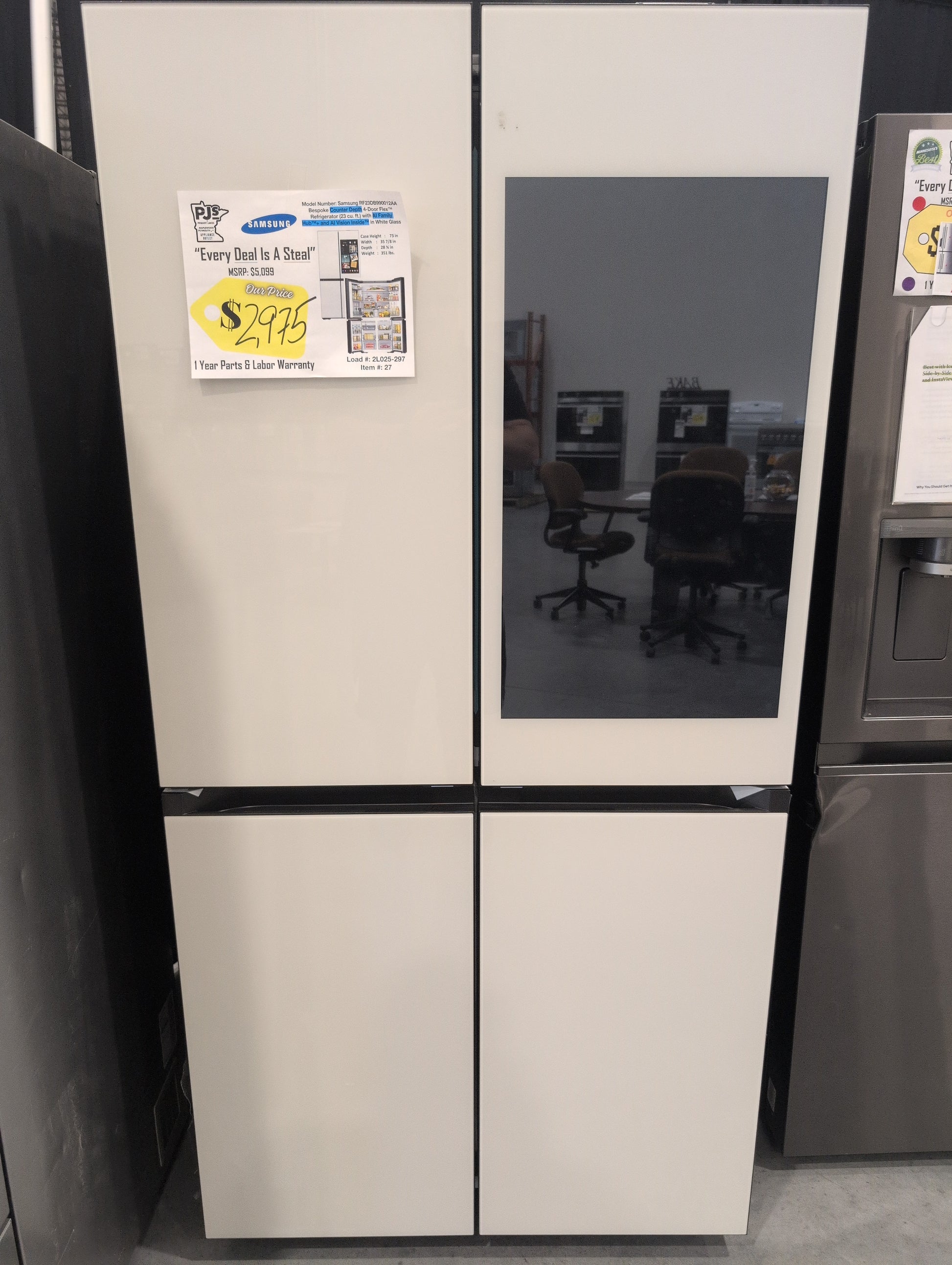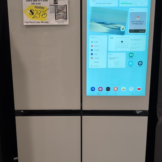 Samsung's Bespoke 4-Door Flex Counter Depth 23 cu. ft. Refrigerator features AI Family Hub+ with the industry’s largest screen and changeable door panels. AI Vision Inside automatically recognizes what's in your fridge, so you always know what's inside. Beverage Center provides quick and easy access to refreshingly cold water two ways.