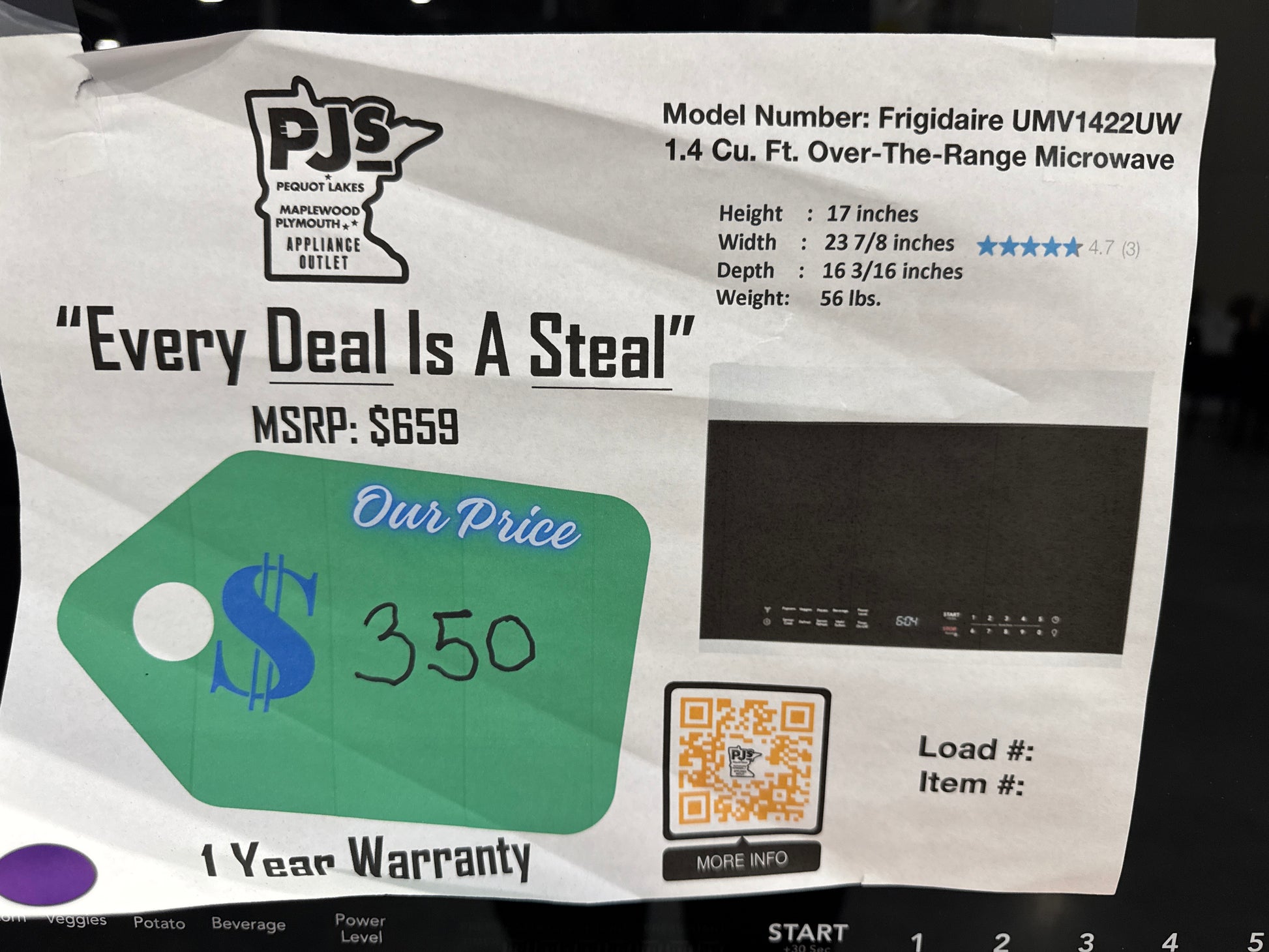 Frigidaire UMV1422UW 24" 1.4 Cu. Ft. Over-The-Range Microwave