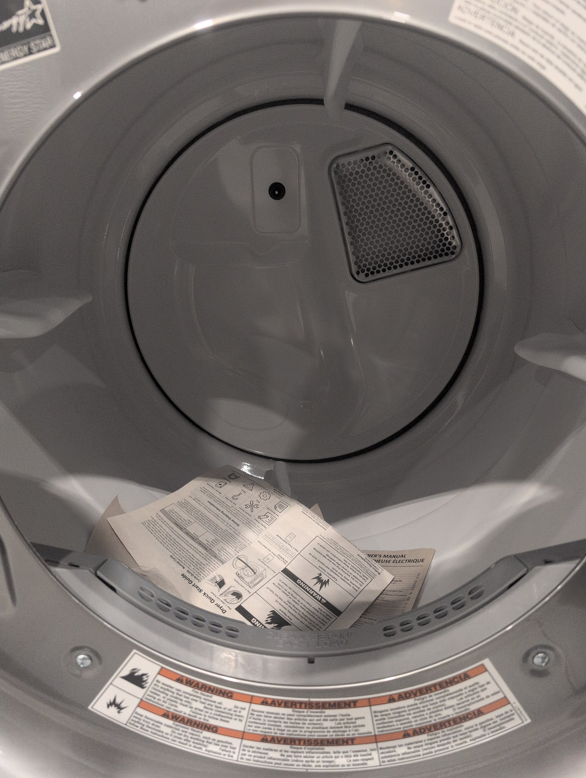 - Four baffles tumble clothes in a randomized pattern, allowing items to open up freely. This helps increase the effectiveness of the dryer for small loads.